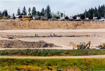 J.A. Morris Construction took this property from a large hill and re-contoured the lot to make it acceptable for building. The site work includes all infrastructure, plus a 50 foot tall, 500 foot long retaining wall. Once the site development was complete it allowed us to build the masonry block and wood framed building that was the site of Topping Volvo, now South Sound Trucks, in the Olympia Auto Mall. Satellite mapping of the topography shows that the site has not moved one inch since its completion in 1999.